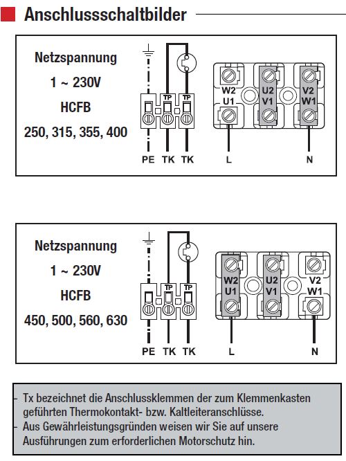 -Mit Thermokontakten ausgestattet, die Anschlüsse sind zum Klemmenbrett geführt